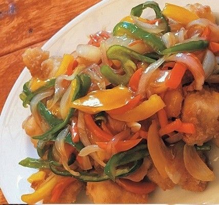 たっぷり野菜をサッと炒め、甘酢あんで味つけ。チンした業スーの冷凍から揚げを加えれば、お店の味に。肉だんごでも!