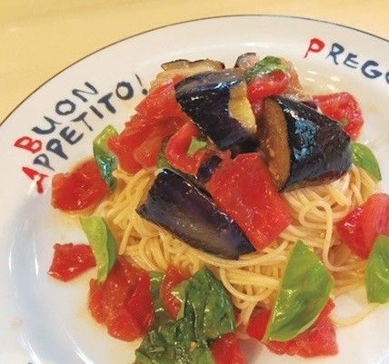 トマトとバジルを切って揚げなすをチンしたら、あとは麺をゆでオリーブ油や塩、こしょうなどで調味。めんつゆで和風にしても。