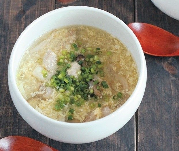 鶏肉をごま油で炒めて水を加え、中華だしで味つけし、大根おろしと溶き卵を入れてサッと煮るだけ。食欲のない暑い日にも。