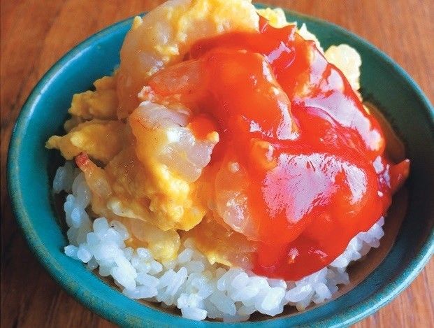 酒を入れた湯でサッと煮たえびを、ごま油で炒め、溶き卵を入れてふんわり炒めるだけ。甘酢あんをかけて、ご飯にのせても。