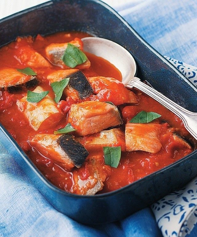 生鮭4切れは一口大に切り、しょうゆ大1をもみ込んで10分おき、オリーブ油大2を中火で熱した小鍋で焼く。一口大に切ったトマト4個分を加えてサッと炒め、水300C、オイスターソース大2を加えて煮込み、塩、こしょう各適量で調味し、好みでバジルを散らす。