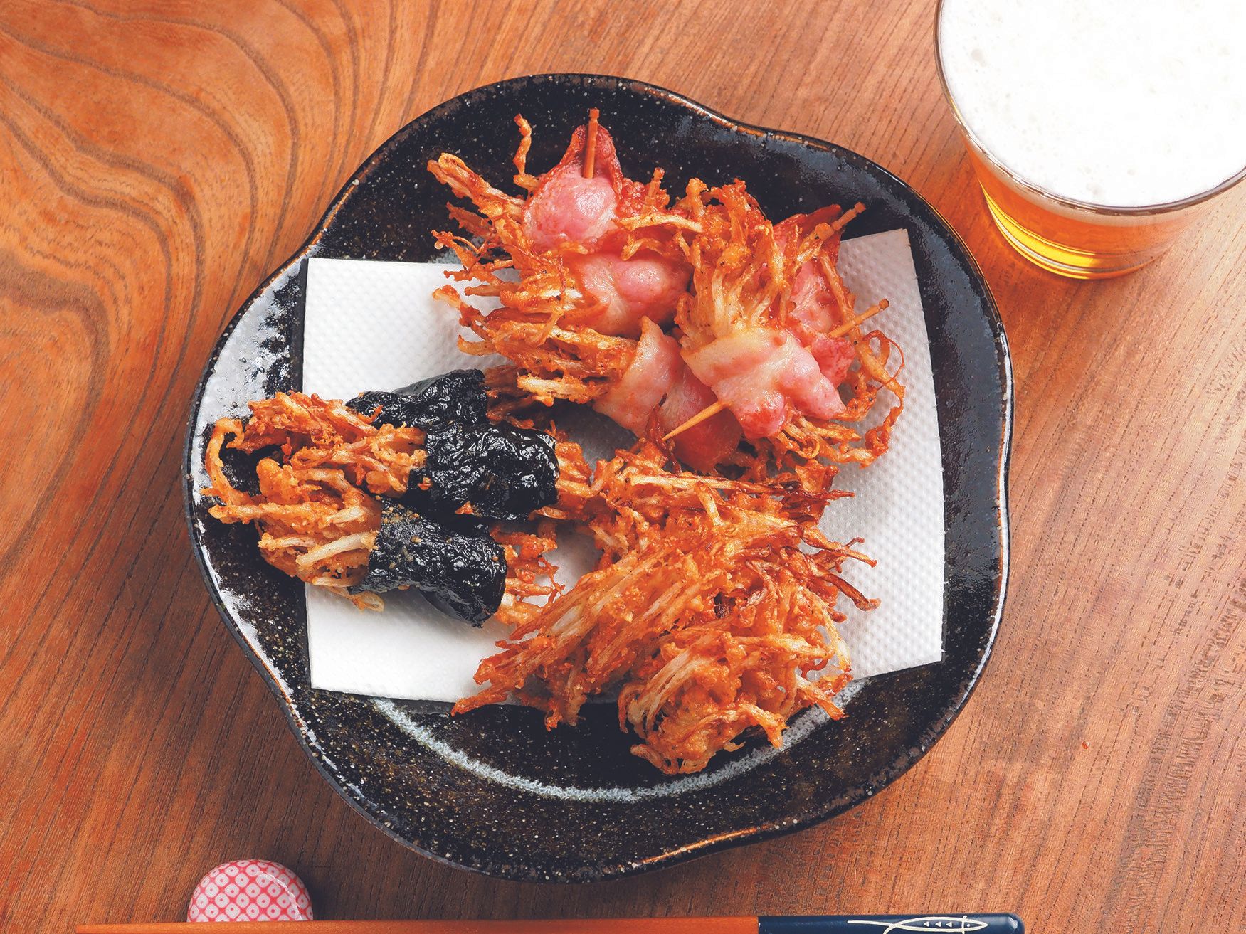 もやしのから揚げ:もやしに小麦粉、粉チーズ、にんにくじょうゆをふって混ぜ、かき揚げの要領で揚げ油で揚げる。ベーコンや焼きのりで巻いても。