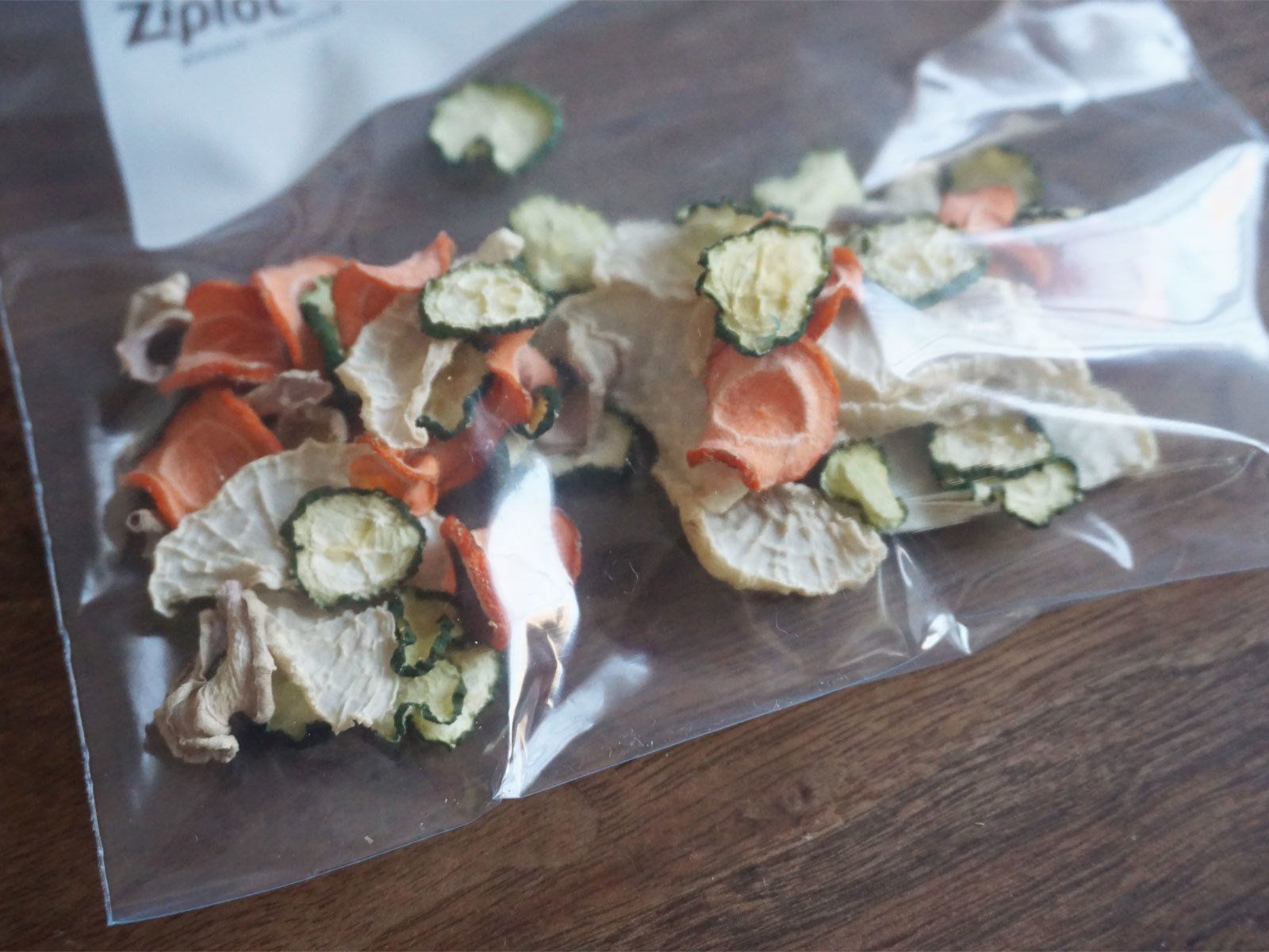 また、りんごやバナナ、レモン、パイナップル、キウイフルーツ、いちごなどのドライフルーツもおすすめ。ただし、レタスやもやし、水菜などの水分が多くて傷みやすい野菜は向きません。