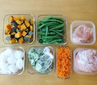 常備菜づくりと合わせ、お肉の下処理も行ったtokotokoさん。切ったり、ゆでたりとシンプルに調理した野菜は、お弁当や朝ごはんの付け合わせなど万能に使えます。鶏むね肉は、1枚は塩麹とニンニクで、もう1枚は砂糖と塩で下味をつけました。低温でじっくり火を通して、おかずやそうめんの具として活用するそうですよ。