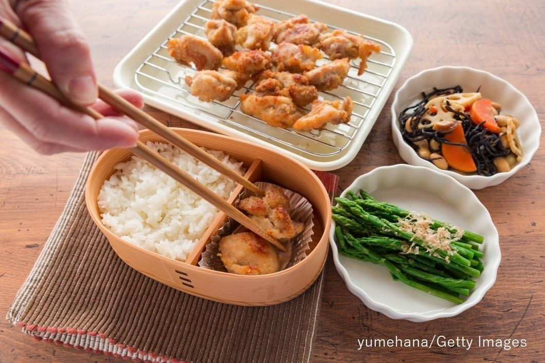 また、にんにくやしょうが、からし、わさびなどの薬味やカレー粉などのスパイス、梅干しやお酢には抗菌作用があるため、お弁当に取り入れると効果的です。例えば、カレー粉を使ったタンドリーチキンや酢飯を使ったチラシ寿司などはおすすめ。市販のチューブタイプの練り梅やにんにく、しょうがなどを揃えておくと、手軽に味つけに使えます。