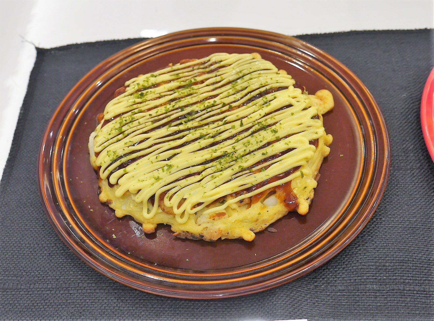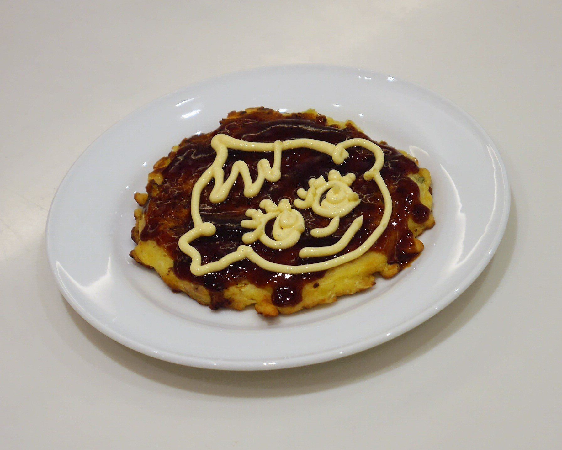 細くマヨネーズが出せる――という点では「3つ穴」も「細口」も同じですが、「細口」の1本線は細かなデコレーションをするうえで、やはり欠かせません。活用講座ではお好み焼きの上に「細口」でキユーピー人形の顔を描くデモンストレーションも。確かにこれは「3つ穴」では難しいですよね。