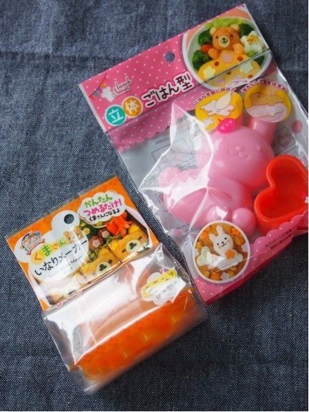 今回使うのは、ごはんを詰めるだけで簡単にかわいくデコできる“立体ごはん型“と“くまさんいなりメーカー”どちらも108円(税込)。ちなみに立体ごはん型は、クマとウサギの2種類あります。