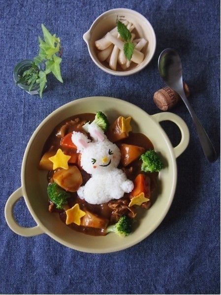 夕食にカレーを作ると次の日のお昼ご飯が確保できてうれしいですが、家族からは「またカレーかぁ」とちょっと不満な声が。しかし、このにっこり笑ううさちゃんを見たらそんな不満はでないはず!!