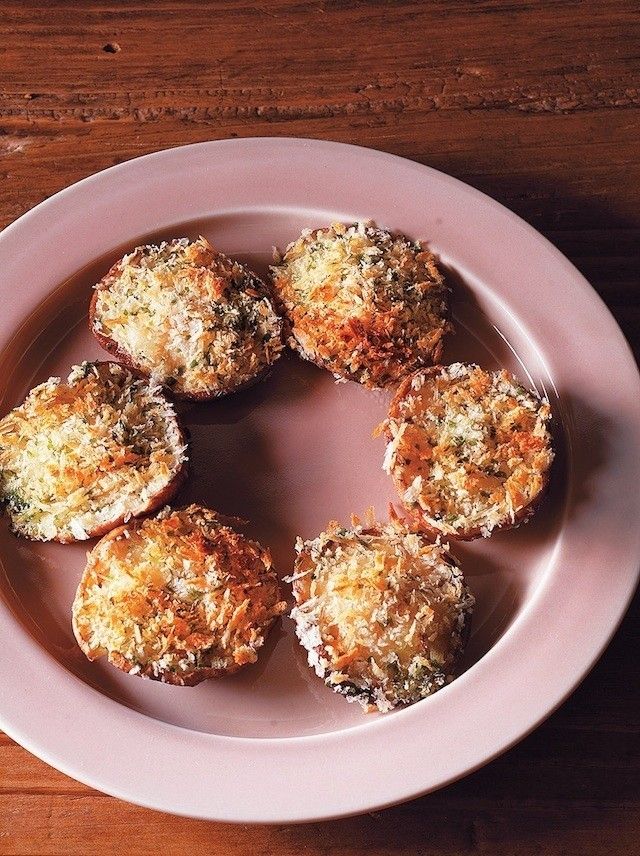 2、パン粉とドライパセリを混ぜ、1 に押しつける。アルミホイルに並べ、トースターに入れて、こんがりと5~6分焼く。
