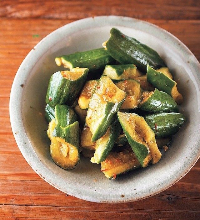 きゅうりをたたいて割れば、包丁いらずで味もよくしみこみます。