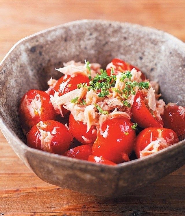 トマトにツナのうまみがからんで、美味!見栄えもいいので、おもてなしの気軽な一品にもいいですね。