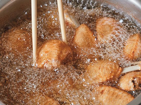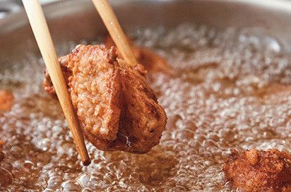 箸で軽くはさんでみて中がプルプルしたら、ジューシーに揚がっている証拠!