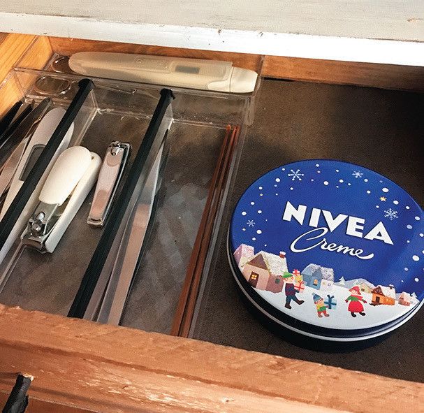 つめ切りや体温計、耳かきなどこまかいものは、引き出しの中を仕切ると見やすくなって迷子が防げます。定位置が決まっていれば、使ったあともみんなが戻しやすくてなくさない(Kaoriさん・早希さん)