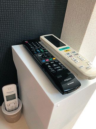 リモコンはみんなの目に留まりやすい電話機の横に。充電器は就寝時に充電するので寝室に。それぞれ必要な場所に置くことで、物の管理も片づけもしやすくなりました(純子さん)