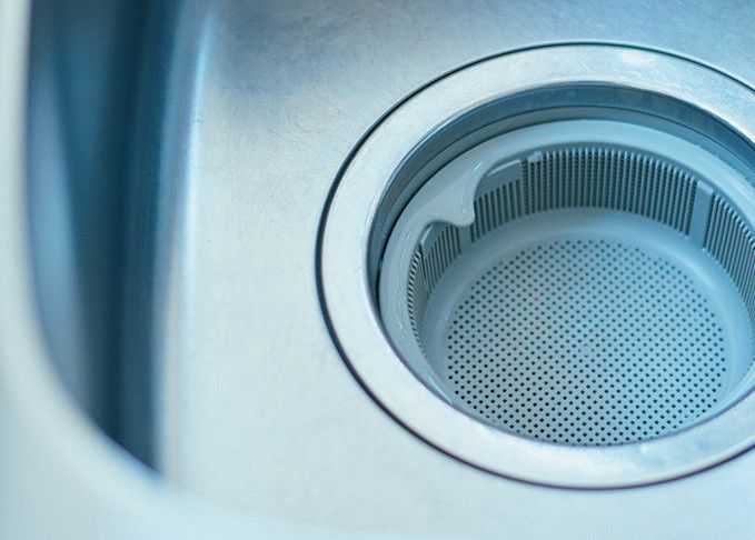 シンク内の排水口のふたは、常になし! ぬめりをイヤイヤ掃除することがなくなったうえ、生ゴミがいつも目に入ることで、サッと拭き掃除する習慣がついたそう