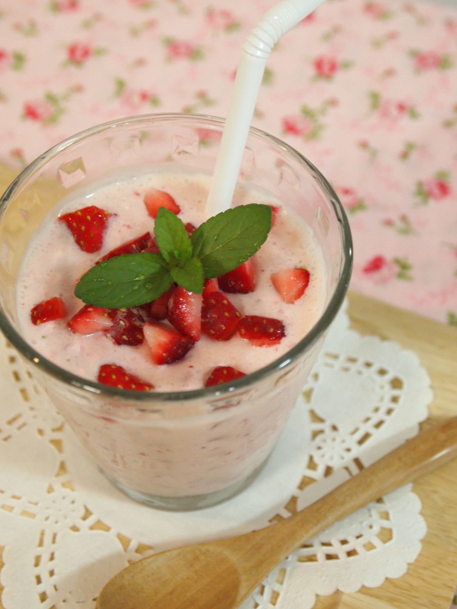 サンキュ!ブロガーのNaluさんが作ってくれたのは、ほのかなシャリシャリ感がおいしいスムージー。あらかじめ冷凍しておいたフルーツを、ビヒダスプレーンヨーグルトと牛乳と一緒に、ミキサーにかけるだけ。「ほかに、バニラアイスやコンデンスミルクを入れてもおいしいですよ」とのこと。季節や、その日の気分に合わせて、使うフルーツを選ぶのも楽しそうですね。