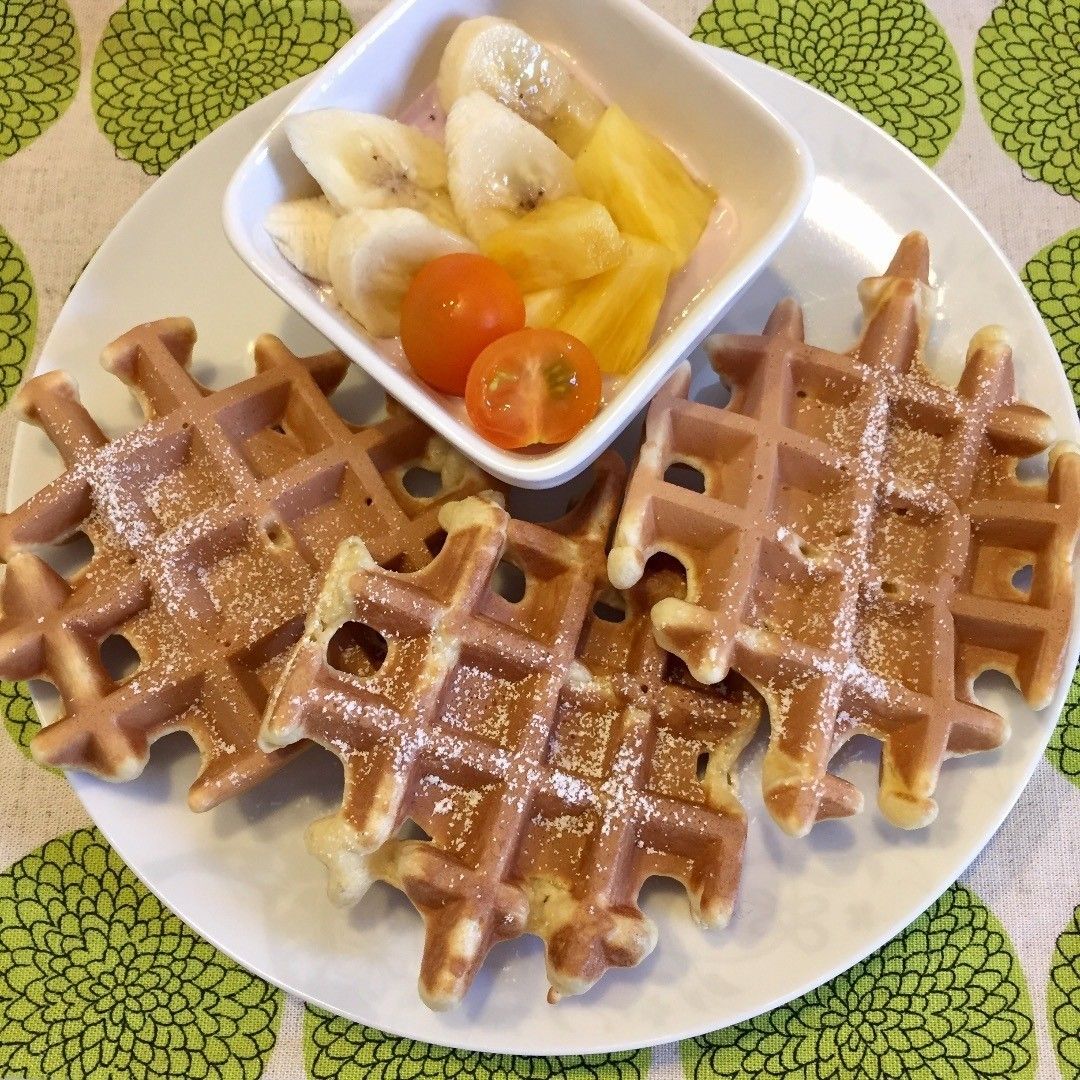 あわただしい平日はそのまま食卓に出すことが多いそうですが、休日は器に盛って、たっぷりのフルーツをトッピング。「この日は、フルーツと一緒にプチトマトもオン。大好きなヨーグルトのおかげで、トマトが苦手な二男もパクパク食べてくれました」