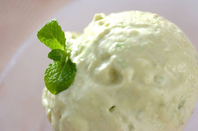 アボカドをアイスクリームとして味わうアレンジレシピ。アボカドのクリーミーさと、冷たく甘いアイスクリームがよく合います。最後にミントの葉も添えれば、さわやかなデザートの完成です。