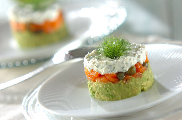 サーモンと相性抜群のディル、クリームチーズなどをつかった、見た目もおしゃれな一品。アボカドのグリーンもきいています。パスタやお肉など、好きなメインとあわせて味わうのはいかが。