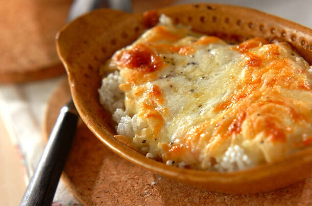 シチューが余ったら、チーズといっしょにご飯にかけてドリアにするのもおすすめです。少ない材料で簡単にごちそうメニューがつくれるので、夕食の献立に悩んだときにももってこいですよ。
