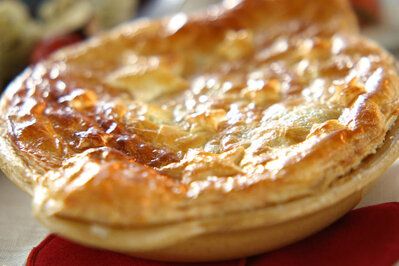 ホワイトシチューを活用した、ポットパイのレシピ。サクサクのパイに、濃厚なシチューが相性バツグンの一品です。少ない材料でつくれるごちそうメニューは、おもてなしやイベントにピッタリ。アツアツのうちに味わいましょう。