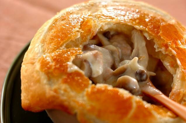 サクサクパイと温かいシチューの黄金の組み合わせ。パイをサクサク崩しながら食べるのが楽しいですね。イベントにもピッタリのレシピです。