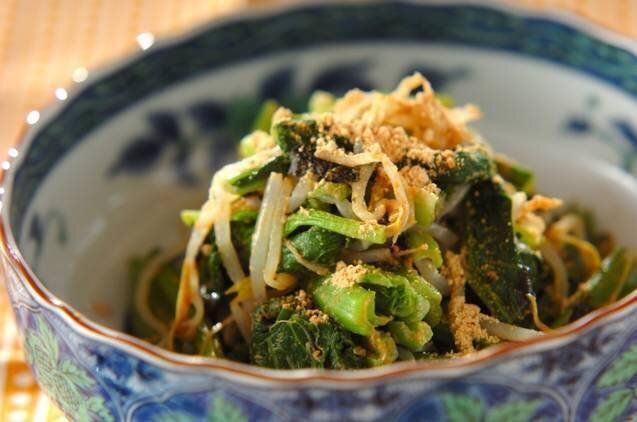 小松菜を使ったあえ物に、きな粉をプラスしたレシピです。味つけのりは、焼きのりに変更してもおいしく仕上がりますよ。お好みでしょうゆをプラスしても◎。和食の副菜におすすめです。