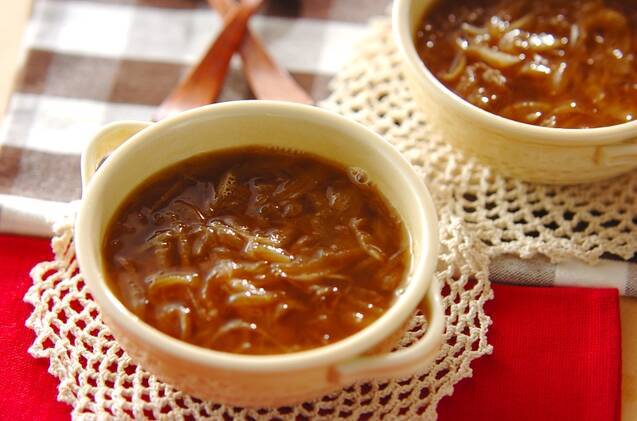 電子レンジを使って手早くつくりやすい、お手軽オニオンスープのレシピ。シンプルな味つけで、とろとろ玉ねぎの甘みを存分に感じられそうです。お好みでクルトンを入れてもおいしそうですね!