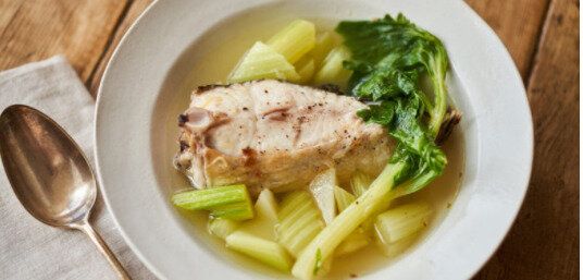 白身魚とセロリのスープ煮