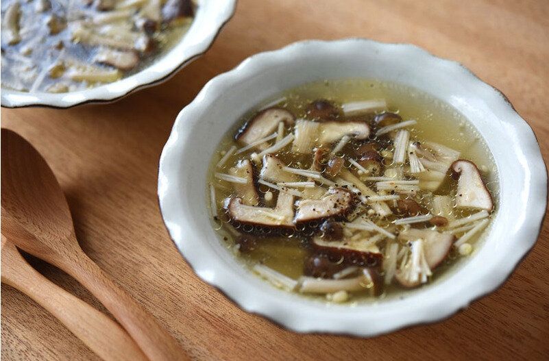 手羽中のゆで汁は、旨味がたっぷりなので、捨てずにスープに活用するのがオススメです。たっぷりのきのこを具材にすれば、旨味たっぷりで、捨てるつもりだったゆで汁を活用したとは思えない一品になります。