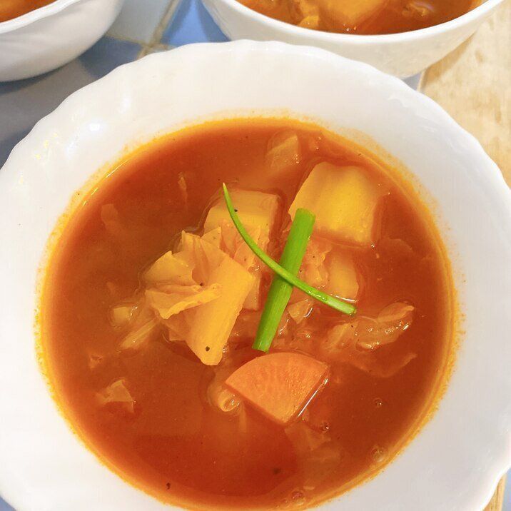 トマトジュースで白菜のスパイシースープ