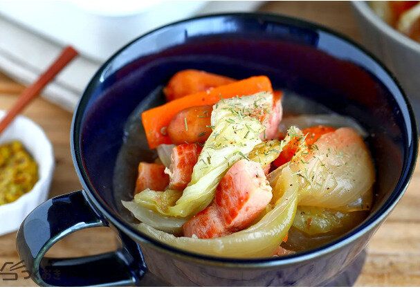 かぶとソーセージのコンソメスープ