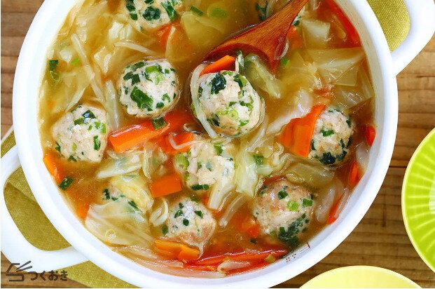 鶏団子とたっぷりの野菜をつかった栄養満点のスープのレシピです。和風スープに仕上げているので、野菜の旨味もしっかり感じられる一品となっています。胃腸が弱っているときや、食欲のないときにもぴったりです。