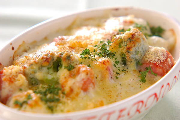 コロッケをグラタンの具として使ったリメイクレシピ。ボリューム満点で、食べ応えのある一品です。辛いものが好きな人は、タバスコでピリ辛にアレンジしてもおいしいですよ。