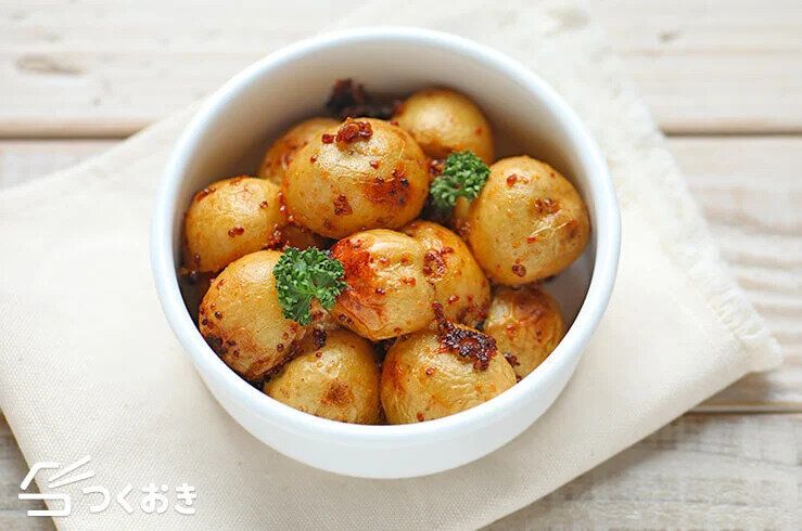 酸味と甘みのバランスが絶妙な、ハニーマスタードローストポテト。食べやすいサイズで見た目もかわいらしいので、お弁当のおかずやおもてなし料理など、いろいろな場面で活躍してくれる一品ですよ。
