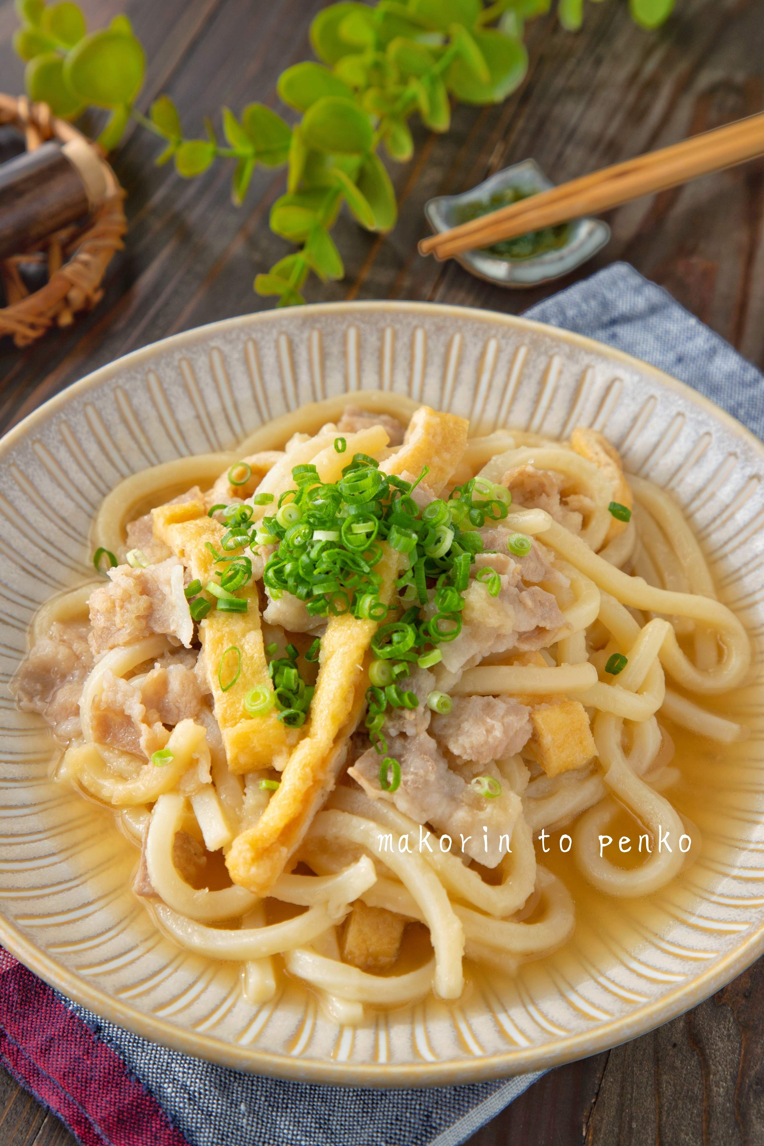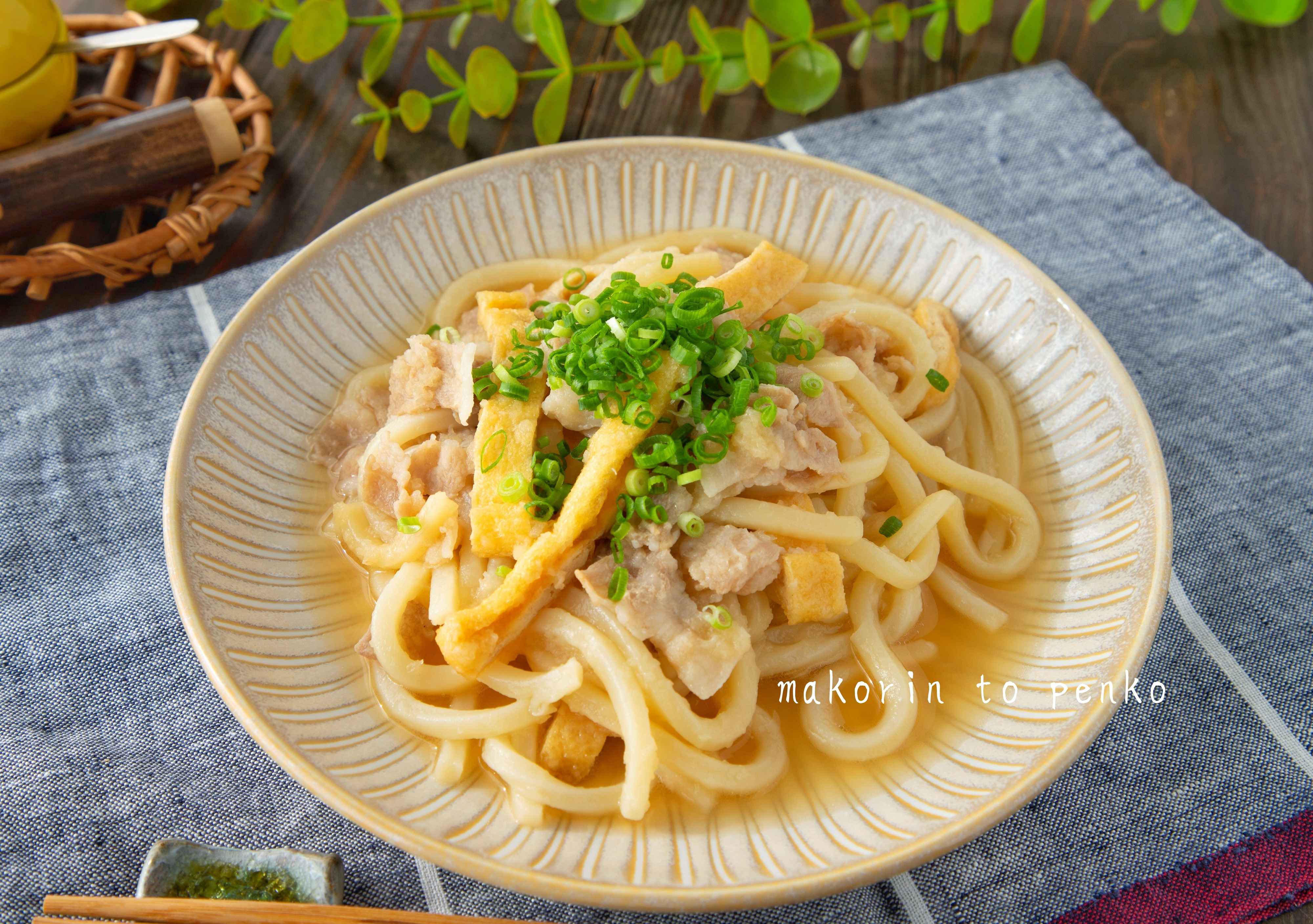 バタバタ忙しい日や、1人ランチにサッと作れる便利な「豚バラ肉と油揚げのおろしうどん」。