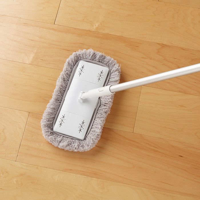 マイクロファイバーの極細繊維が汚れをしっかり絡め取るフローリング用のモップ。同シリーズの『アルミ伸縮ポール』をジョイントして使用するのがおすすめです。「必要なときにサッと手にとって使えるところがお気に入り。ホコリや髪の毛など小さなゴミもキャッチしてくれますよ」と太鼓判を押すのはスタイリストの大沢さん。モップのすべりもスムーズで、楽しい気分でお掃除できそう!