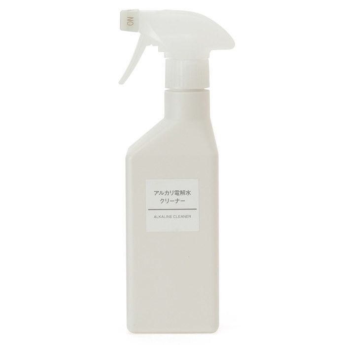 収納アドバイザーのササキさんが「キッチン掃除に欠かせない」と頼りにしているのが、無印良品の『アルカリ電解水クリーナー』。「キッチンの壁や床など、油汚れが気になるところにシュシュッとスプレー。その後ふきとるとすっきりピカピカに!」。界面活性剤を使用していないので、小さな子どもやペットがいる家庭でも使いやすいところも魅力。「シンプルなボトルで、キッチンラックなどに引っかけられるので収納場所にも困りません」。