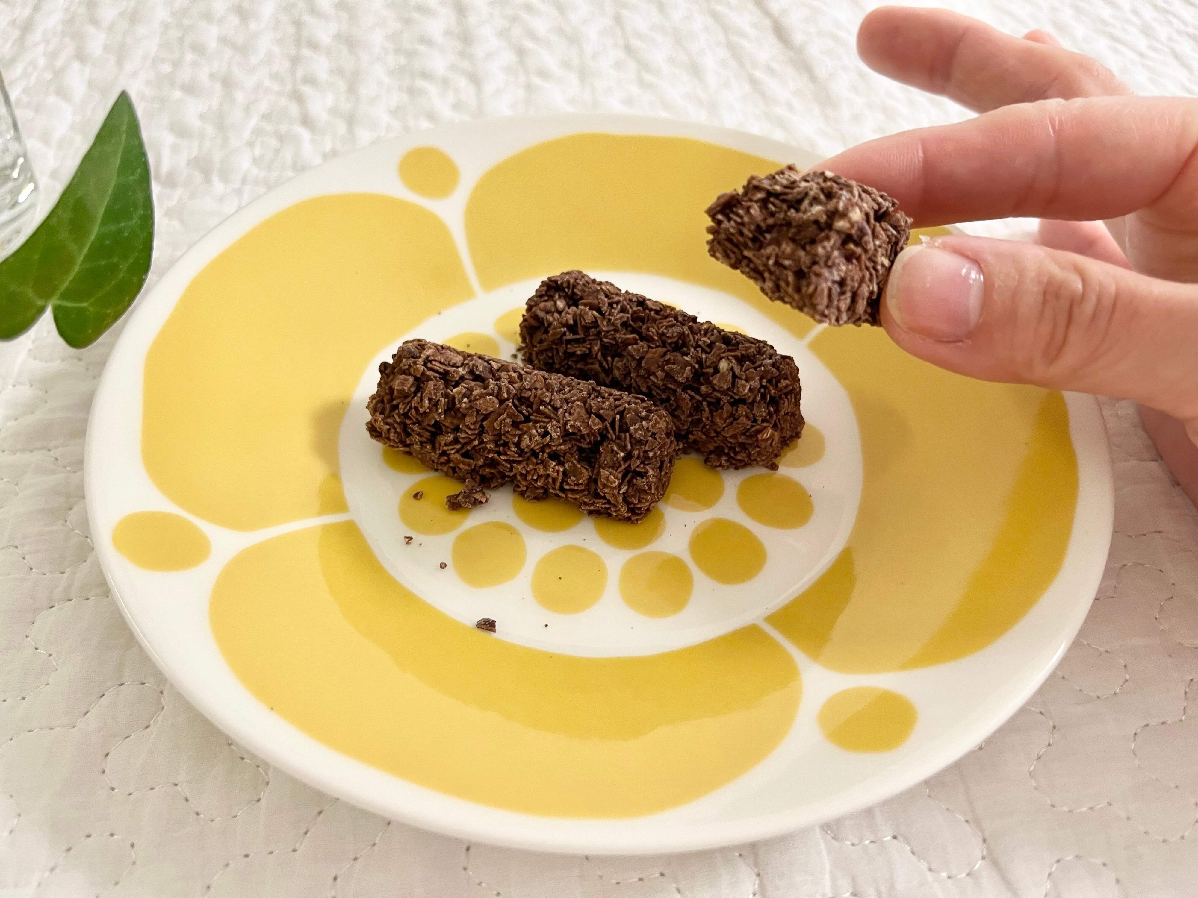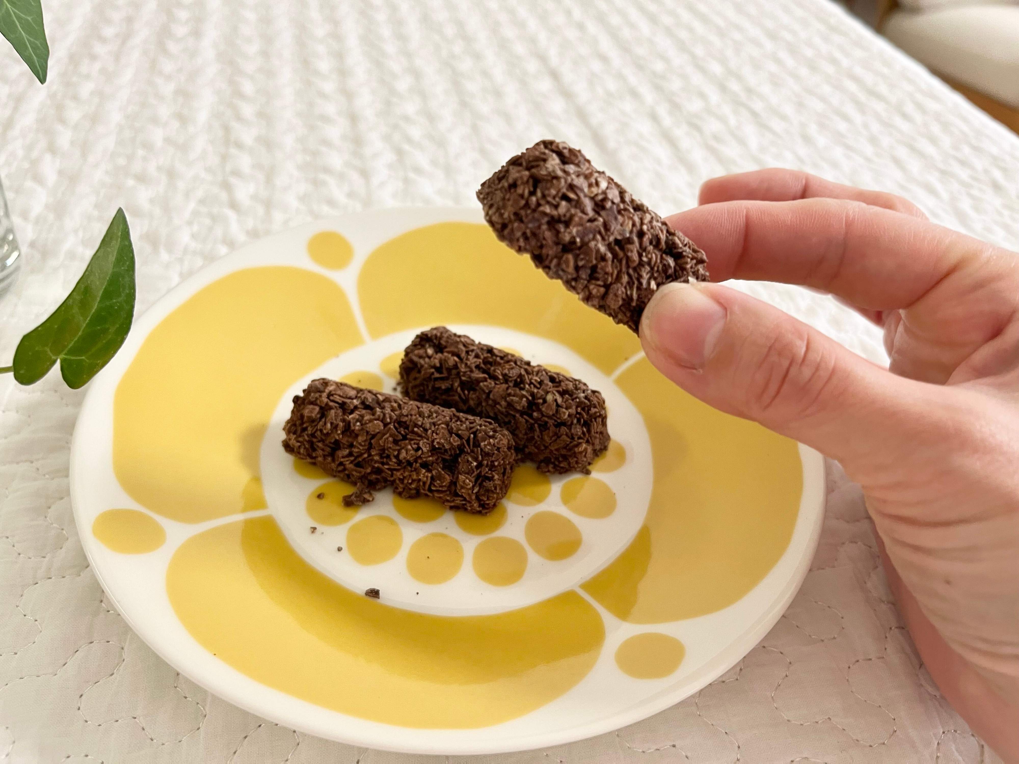 実際に食べてみると、ココアでオートミールがしっかりコーティングされていて、サックサクの軽い食感!ココアは少しほろ苦くて、甘さ控えめで上品な味わいです。優しいココアの味わいとサックサクの食感がクセになり、1度食べると手が止まらないほどのおいしさです。