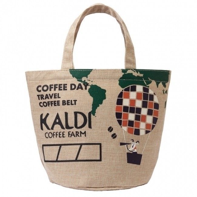 KALDIらしい限定デザインのトートバック。持ちやすいサイズとざっくりした麻素材がナチュラル派の方に人気がありそうですね。お出かけにはもちろん、インテリアにもマッチしやすいのが魅力です♪KALDIの一番人気の「マイルドカルディ」、「コーヒーの日バック」限定の炭焼珈琲モカブレンド、レモンイエローの実をつける稀少なブラジルの豆「カナリオ」の3種類のコーヒー豆が入っています。