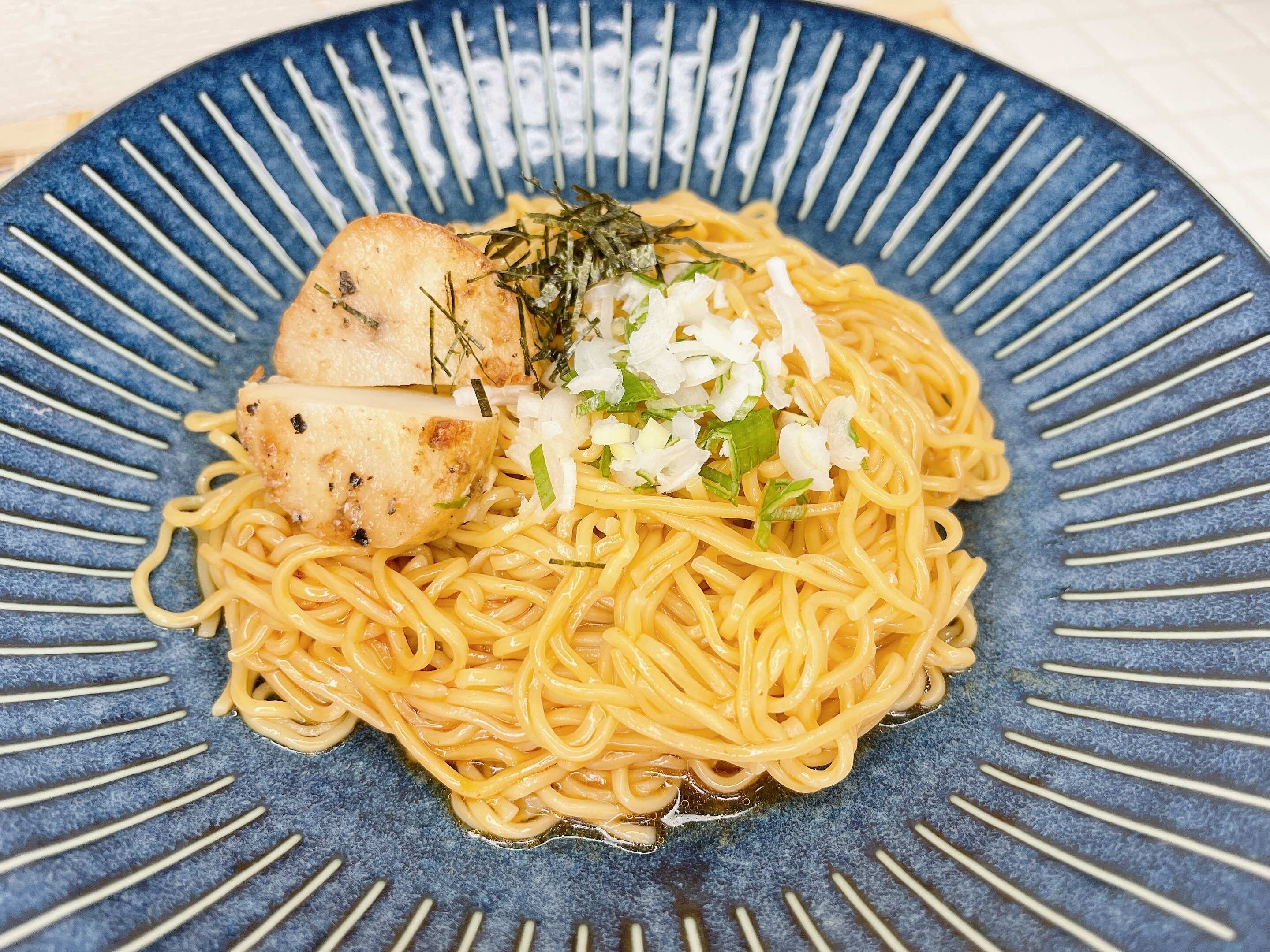 北海道産帆立エキスの旨味とバター醤油のコクが味わえるまぜそばです。
