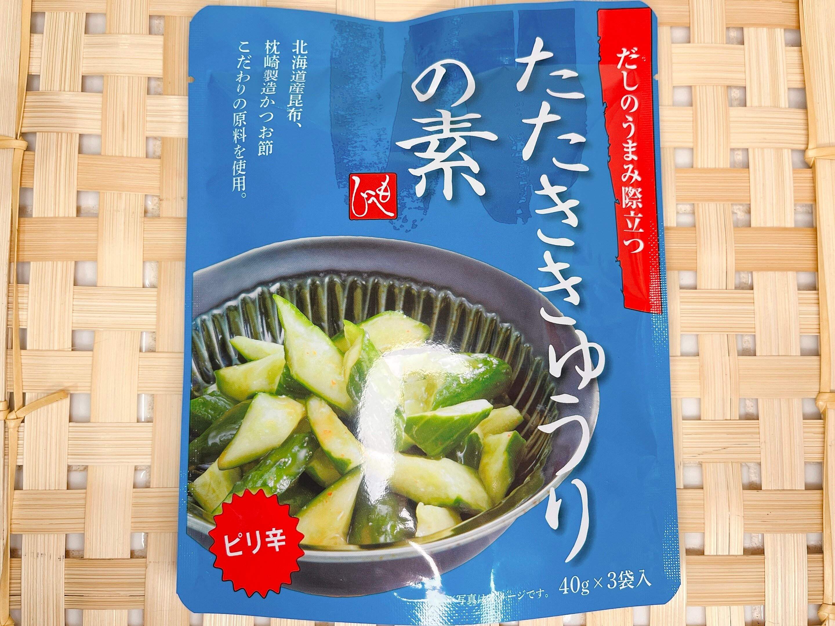 店頭の新商品コーナーで発見し、迷わず購入した『だしのうまみ際立つたたききゅうりの素』