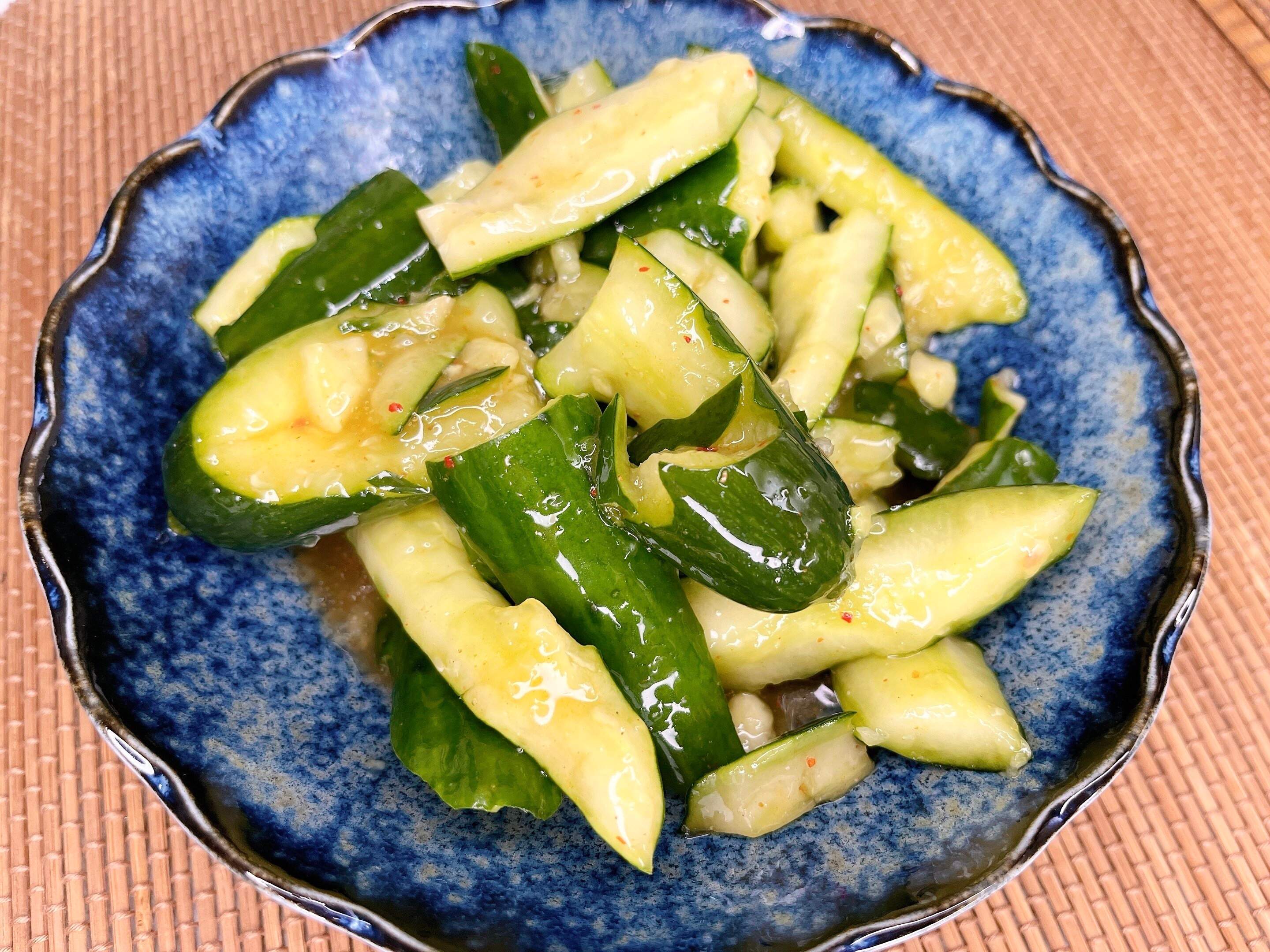 昆布とカツオのうまみ、熟成豆板醤のピリ辛さ、ごま油・にんにく風味が合わさってキュウリとの相性抜群でとっても美味しい!