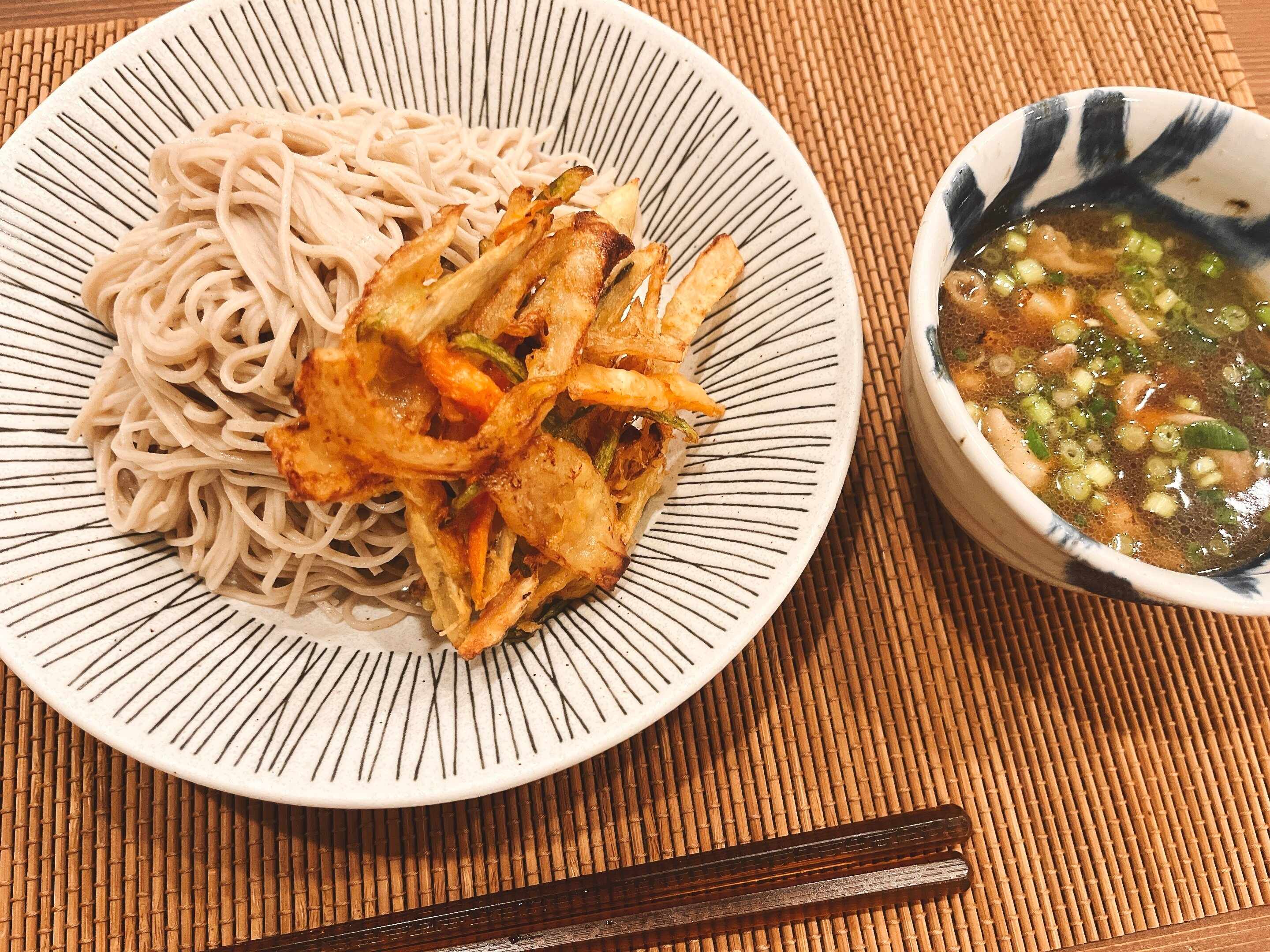 少しアレンジを加え、香ばしく焼いた鶏肉をつゆに入れ、かき揚げを揚げて頂きましたが、お蕎麦屋さんの様な本格的なお味で大満足!