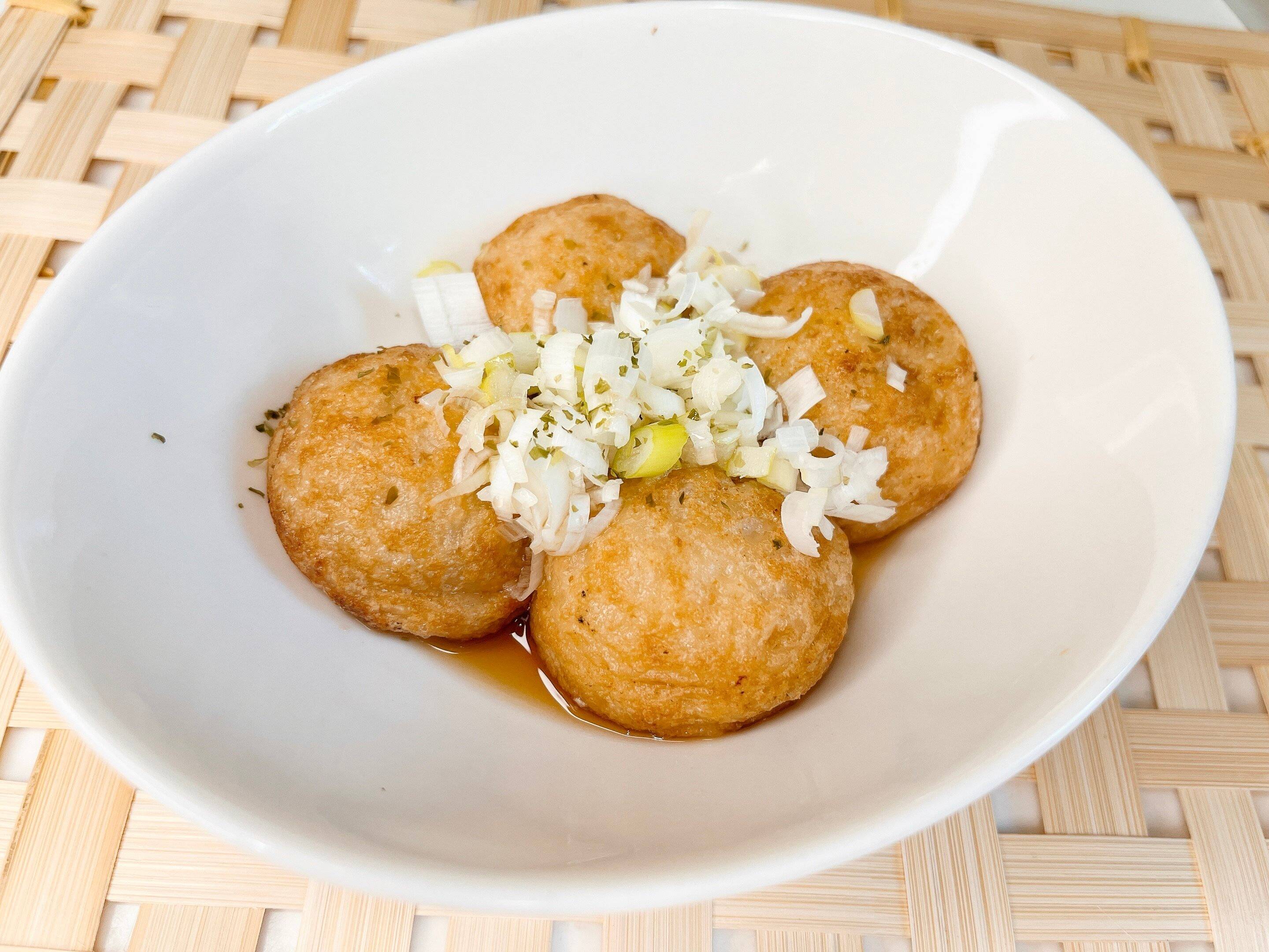 電子レンジで温めるだけなので正直そんなに期待はしてなかったのですが、取り出してみると外側はカリカリまではいきませんがカリっとしていて弾力があります。出汁の香りが強く食欲がそそられます。