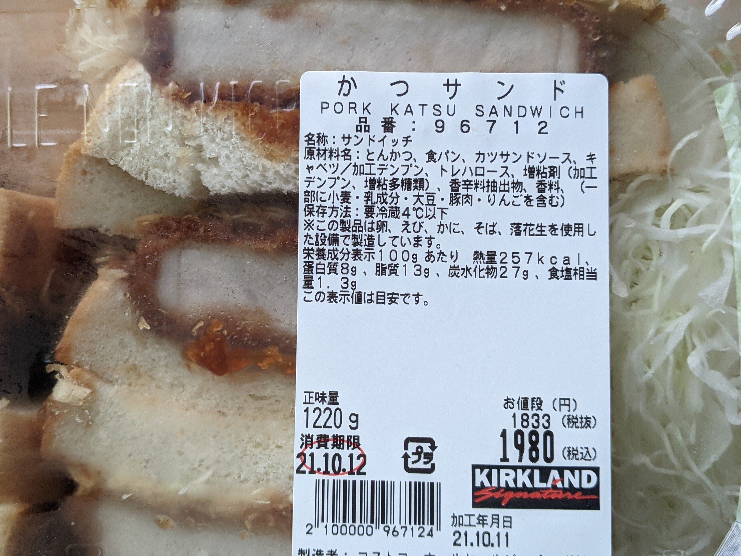 コストコのデリカコーナーに鎮座する、ボリューム満点のカツサンドです。