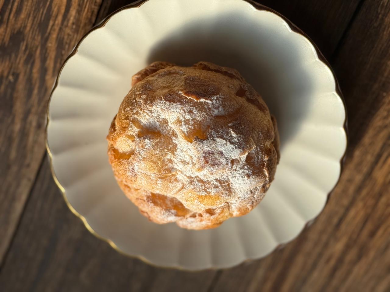 生地は、まるでクッキーのように香ばしく、絶妙なサクサク感。 そこへフォークを入れた瞬間、中から溢れ出すのは、艶やかな黄金色のカスタードクリームです。