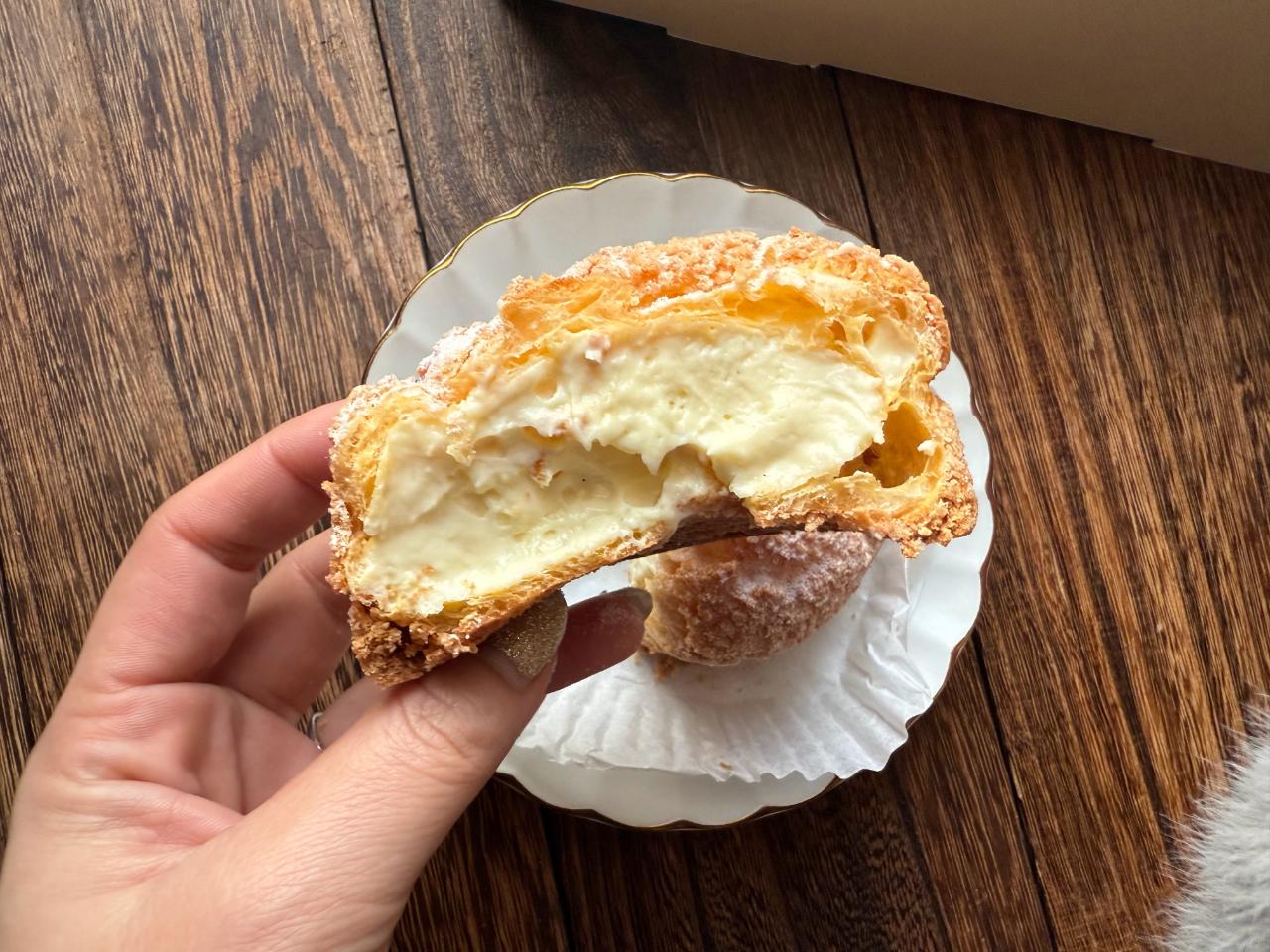 隙間なくぎっしりと詰め込まれたクリームは、卵のコクが驚くほど濃厚。