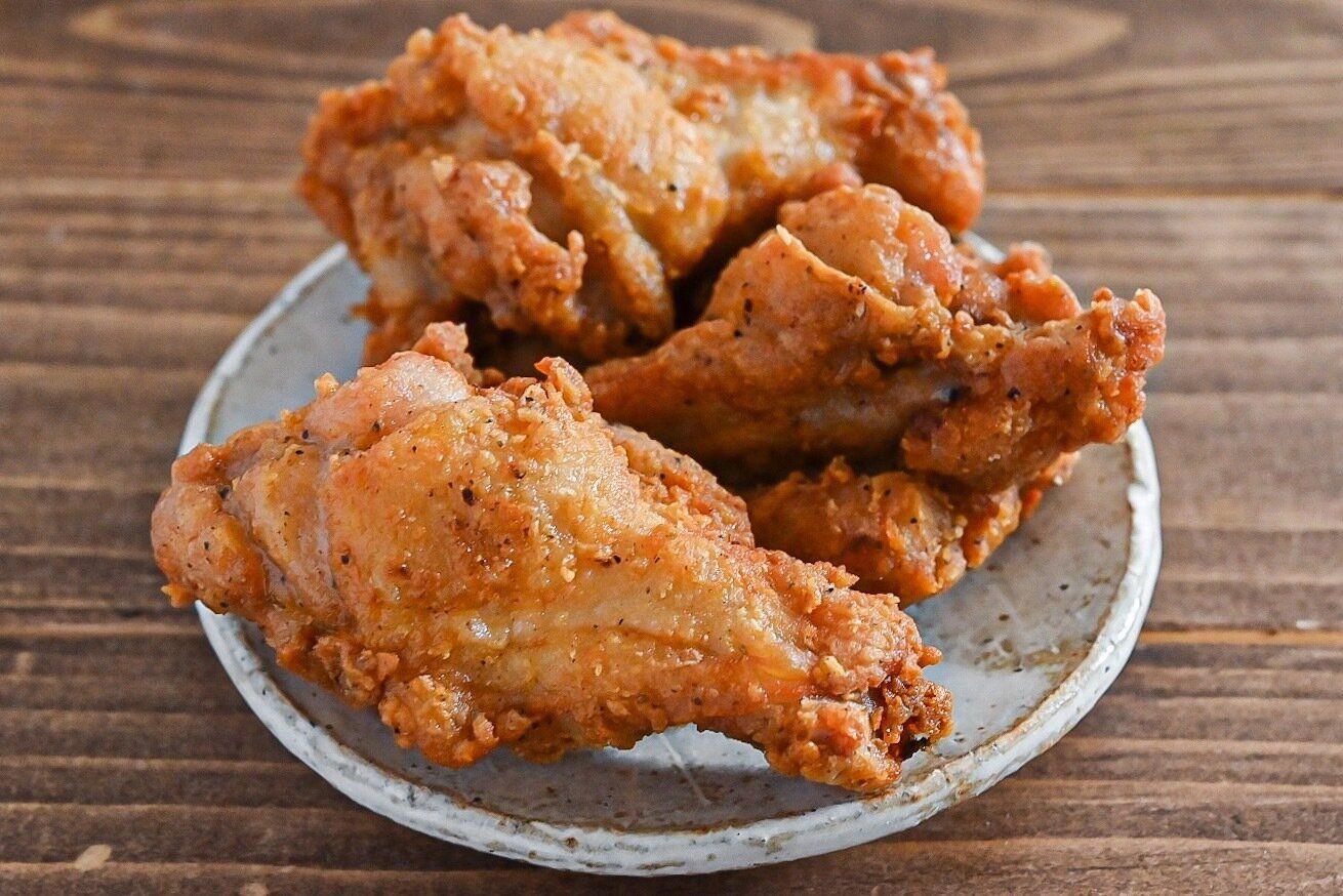 下味たれに手羽元を漬け込み、まぶし粉を絡めて揚げるだけで、