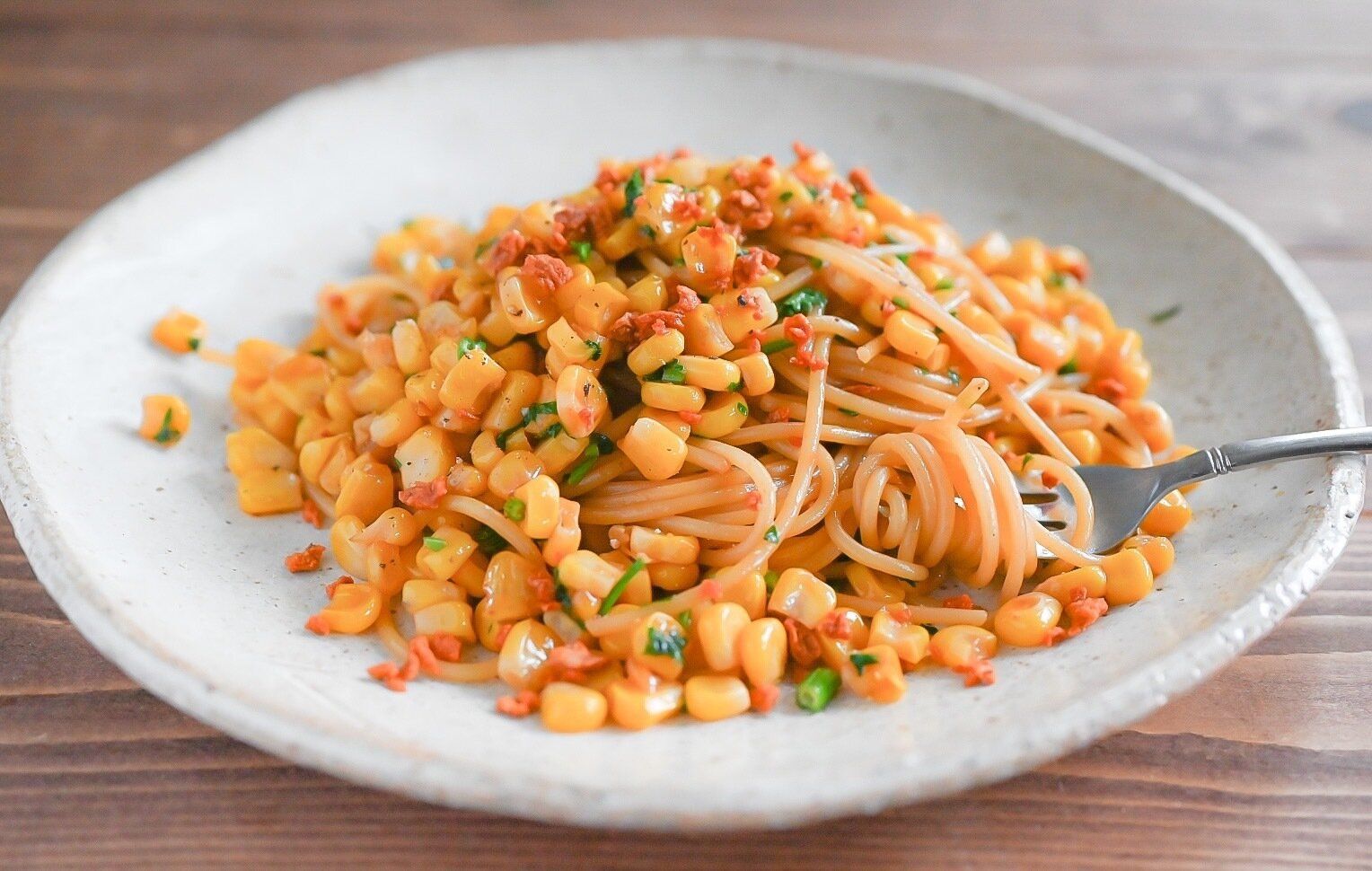 子どもが喜ぶ!コーンのバターめんつゆパスタ